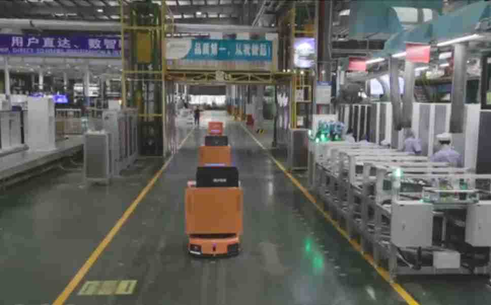 为车载冰箱物流配送打造的智能解决方案,,包含产中物流通过潜伏举升AMR搬运至线边,,产后成品物流智能仓储,,流程包含产中物流智能齐套入库,,,,线边安灯叫料AMR智能配送至线边,,,成品入库、、出库,,,通过无人堆高车机器人,,,智能仓储管理替代人工作业管理,,,,实现更高存储、、、更高效率、、更具柔性化的解决方案。。